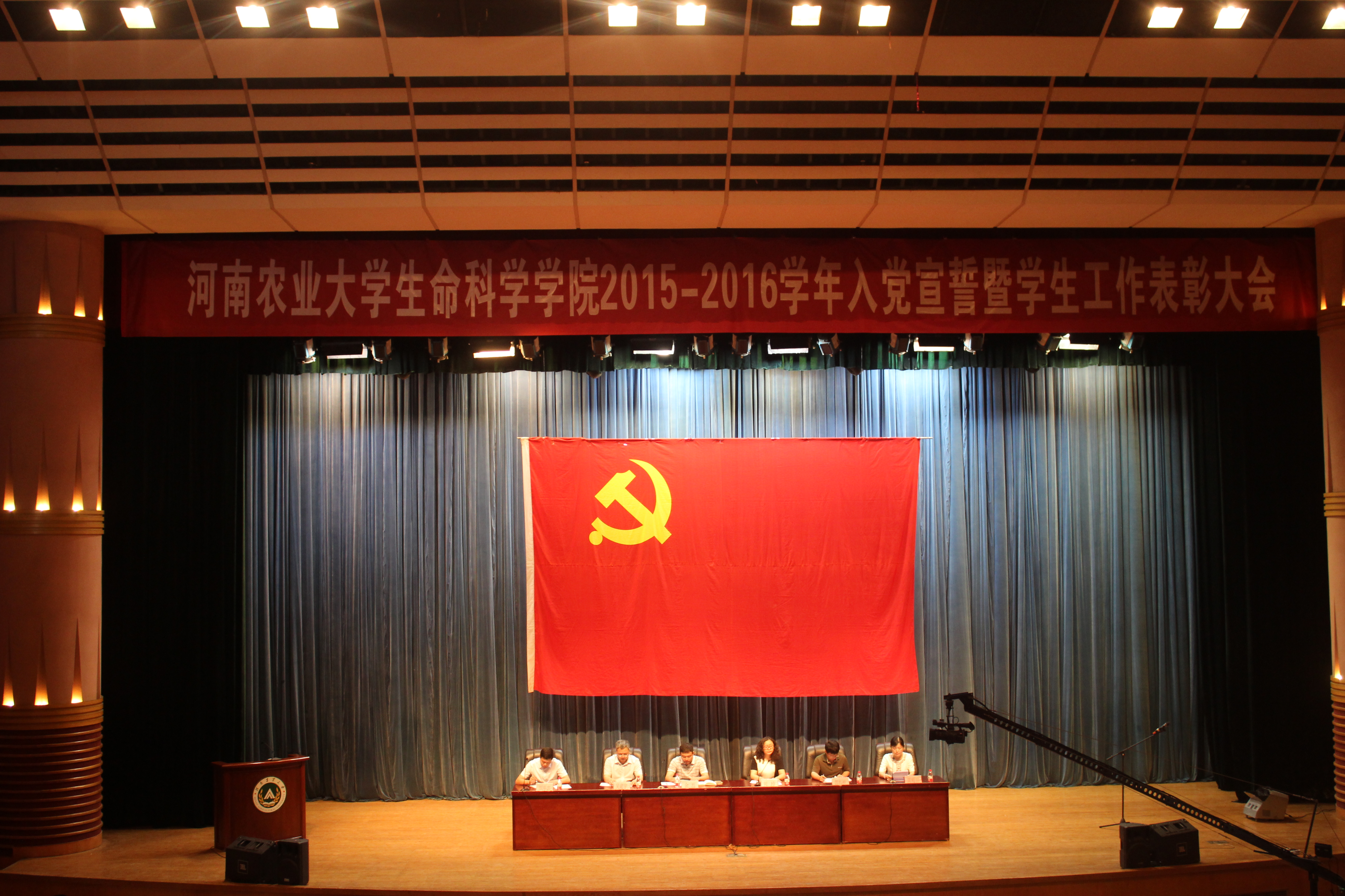 于文化路校区大礼堂举办了2015-2016学年入党宣誓暨学生工作表彰大会,校党委专职副校长、党委组织部常务副部长余磊出席了大会,学院领导班子及学院教师代表、12、13、14级全体本专科生和全体研究生、博士生参加了此次大会,会议由院党委书记陈玲同志主持。