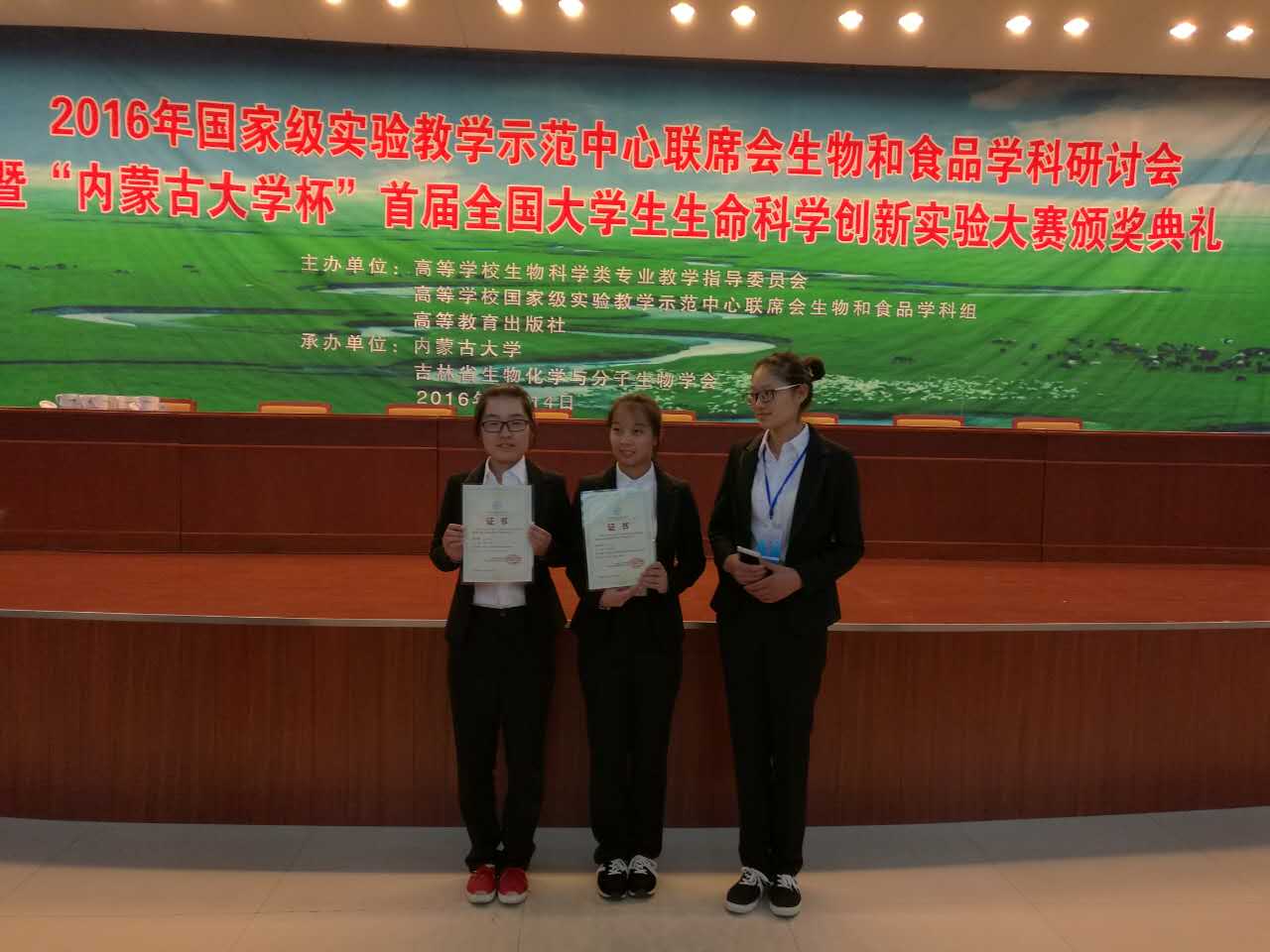 参赛申报的项目经过赛前审查、初评,现场初赛、决赛层层角逐,在王伟、张会勇两位老师的悉心指导下,在学院领导及相关老师的支持和服务中,最终分别获得二等奖和三等奖,在全国大学生生命科学创新大赛中一展风采。
