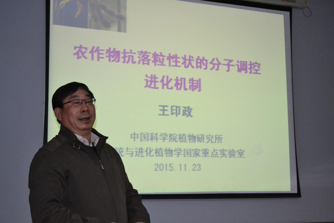 邀请,中科院植物所王印政研究员做了题为“农作物抗落粒性状的分子调控进化机制”的学术报告。