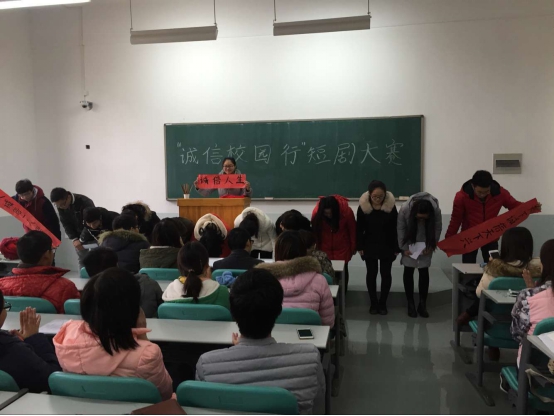 道具充足、惟妙惟肖的《寻城记》,迷途知返、发人深省的《浪子回头》,活灵活现、令人开怀大笑的《考场风云》……这些优秀的剧本在同学们的表演之中,将诚信的含义表现的淋漓尽致。使同学们能够在生活中做到诚信无小事,践行到个人。值得一提的是,来自生工五班的剧本《贷款风波》,表演者将拿到贷款时的激动、用贷款时的兴奋、还贷款时的纠结、知错后的反省,栩栩如生地展现到观众面前时,使我们更加深刻地体会到了诚信的意义。