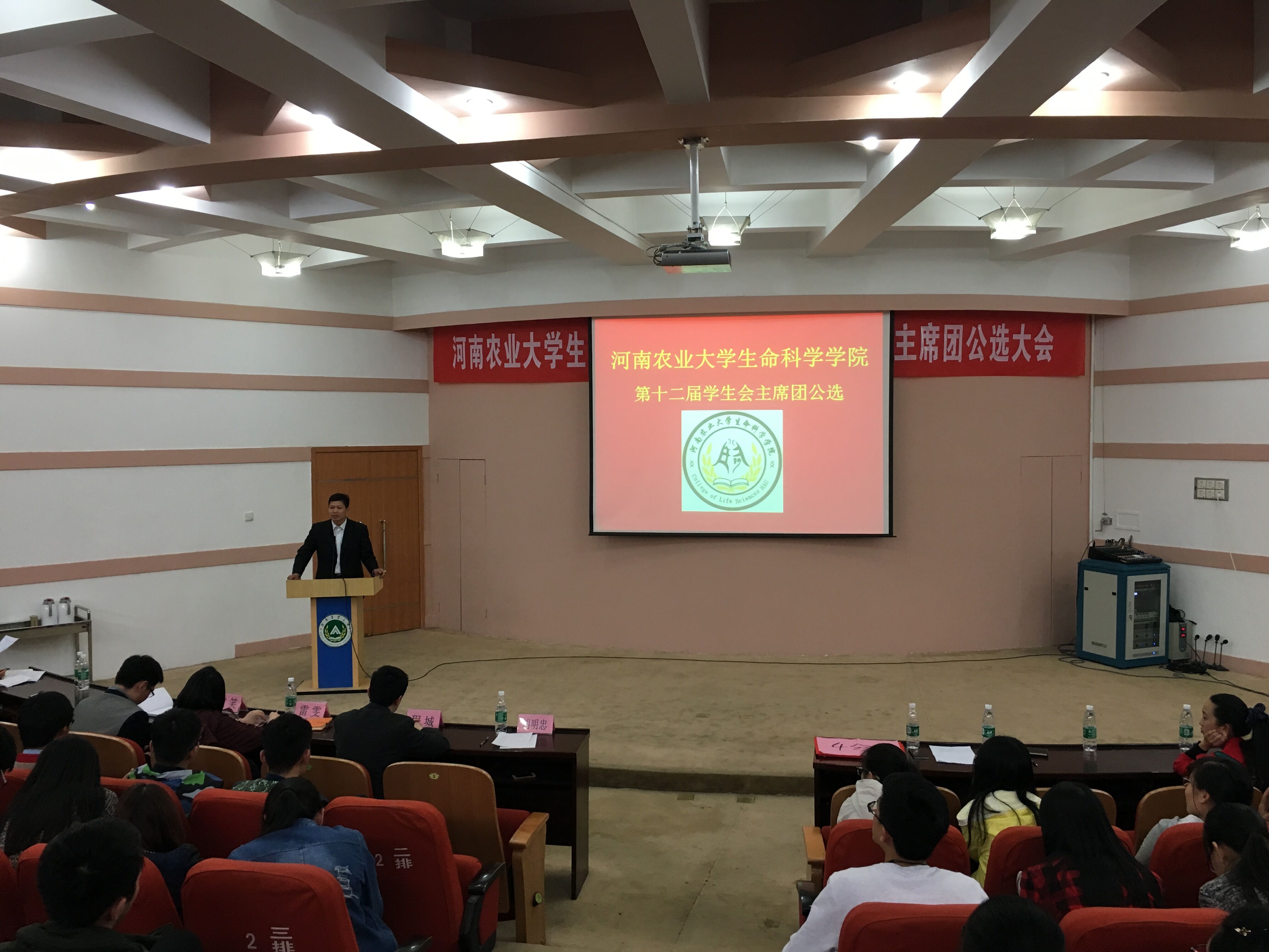 在文化路校区300人报告厅举办了第十二届学生会主席团公选大会。院党委副书记胡明忠,团委书记程城,团委副书记雷雯及团委辅导员黄笑出席了此次大会,院团委委员负责会场的布置和组织工作,各班学生代表组成了评审团。大会由第十一届学生会主席李春甫主持。
