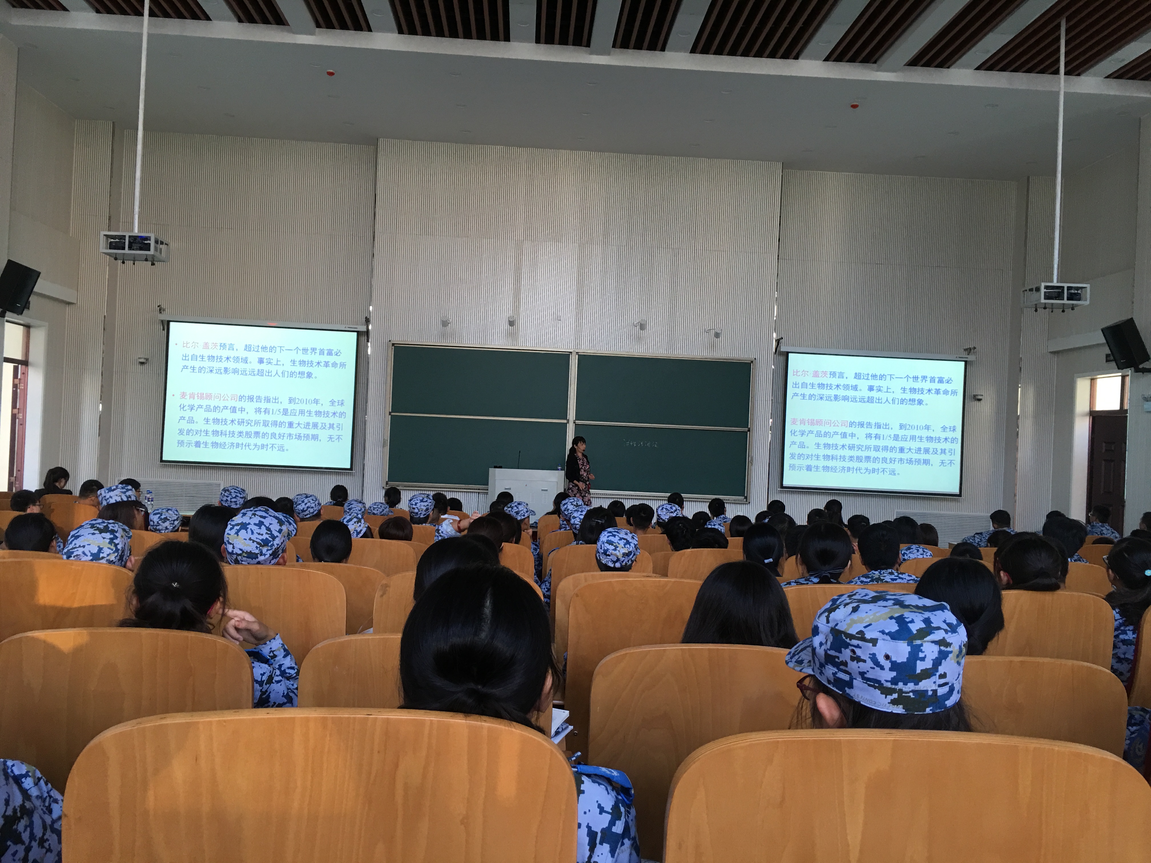 在热烈的掌声中各教室的专业介绍大会开始。生物工程专业由王凤琴老师介绍,王老师首先以“为什么要上大学”这个问题与新生谈起了在大学里的理想,并希望新生们可以找好定位,然后以生物经济与社会环境的关系为引线,以生物工程专业的就业情况和科研情况为主要内容介绍了专业的前景。生物技术专业是由陈新建老师为新生们介绍,首先陈老师用生物技术的定义和就业前景,介绍了小蓝视频