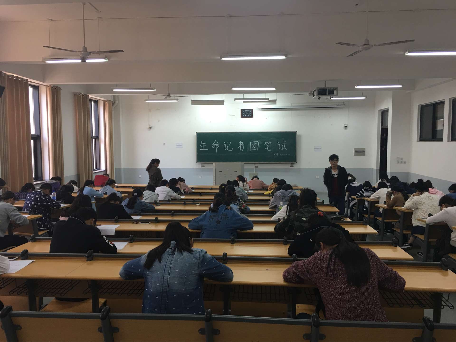 此次笔试工作的试题分别由学生会与记者团进行命题,同时积极组织16级新生参加笔试。笔试中学生们自觉遵守考试纪律;认真对待,规范答题。面试中负责招新的面试官们认真负责的对待此次招新活动,就学生工作的不同需求对16级新生们进行了不同方式的考察,以寻觅出最适合各个工作的人才。同时仔细听取新生的自我介绍,并提出合适的问题来考察新生处理问题的能力。与此同时,16级新生自信从容回答问题,言谈举止中流露出敢于表现自我的信心以及对待学生工作无限的热情与渴望。