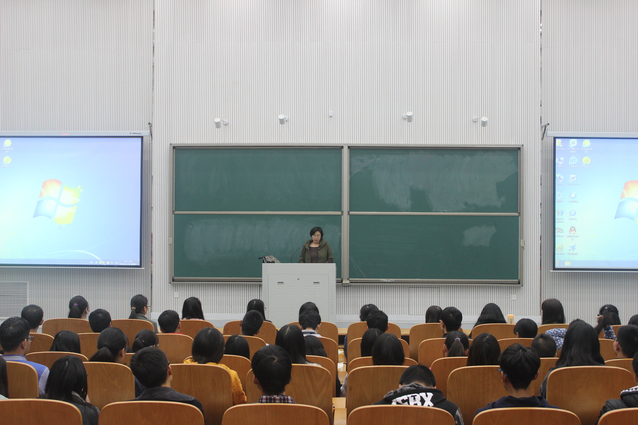 生物化学系副主任王小纯教授主讲,院辅导员姚欣及16级生物技术专业全体同学参加。