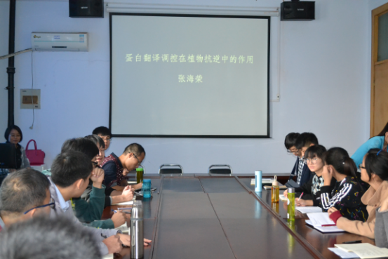 10月25日下午,校特聘教授张海荣老师在1号楼205会议室做了题为“蛋白翻译调控在植物抗逆中的作用”学术报告,小蓝视频