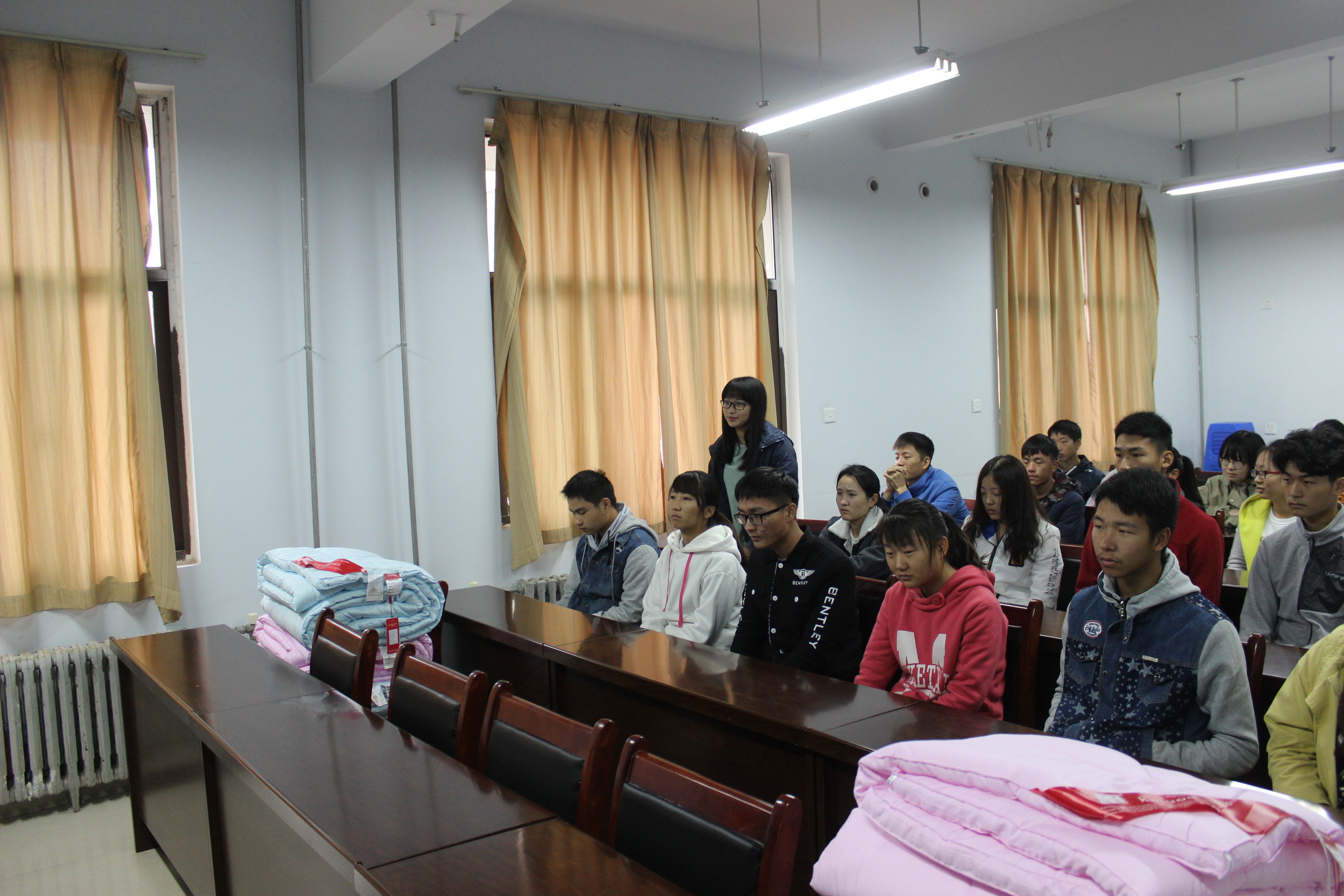 于龙子湖校区紫竹楼259会议室展开了冬季送温暖活动,院党委书记陈玲、院党委副书记胡明忠、 院团委书记雷雯、院16级辅导员姚欣以及部分16级学生参与了此次活动。