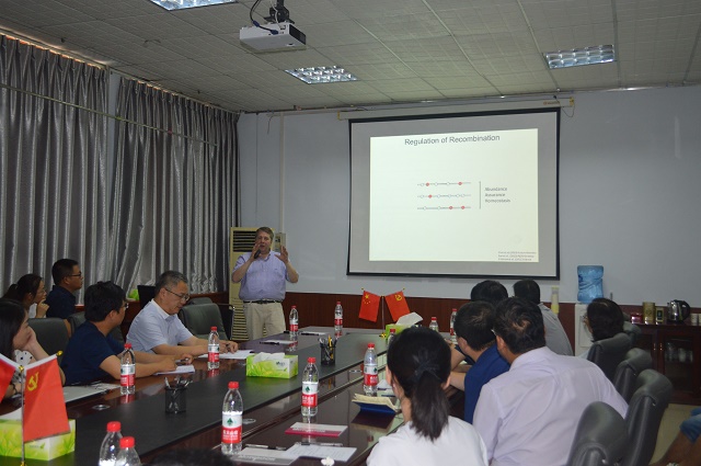 Gregory Paul Copenhaver教授,北卡罗来纳大学教堂山分校生物学系教授,PLOS Genetics 主编,在植物遗传与细胞生物学研究领域具有较高的科研水平和学术影响力。Copenhaver教授首先以“Regulating Meiotic Recombination in Plants”为题,介绍了利用新的荧光技术观察染色体重组情况的原理,随后对PLOS Genetics杂志的投稿要求和流程进行了讲解,并鼓励老师和学生向该杂志投稿。