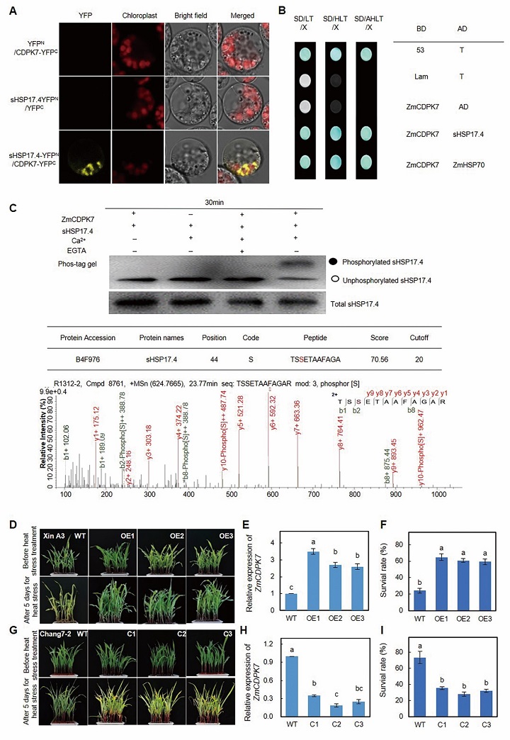 图2 ZmCDPK7通过磷酸化sHSP17.4提高了玉米耐热性