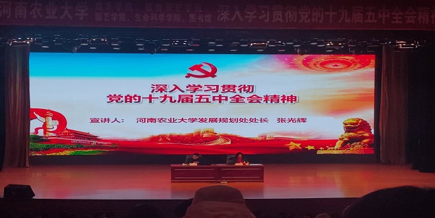 张光辉老师围绕深刻认识我国进入新发展阶段的重大意义、有利条件和重要特征,准确把握2035年远景目标和“十四五”时期我国发展的指导方针、主要目标、重点任务,牢牢把握构建新发展格局的战略构想和重要着力点,坚持党的全面领导,动员各方面力量为实现“十四五”规划和2035年远景目标而团结奋斗等方面对全会精神进行了详细解读。同时,他简要介绍了小蓝视频 “十四五”规划起草过程和发展目标,寄语广大师生增强责任感,以强农兴农为己任,立足本职岗位,为建设以农为优势特色的高水平大学贡献青春力量。