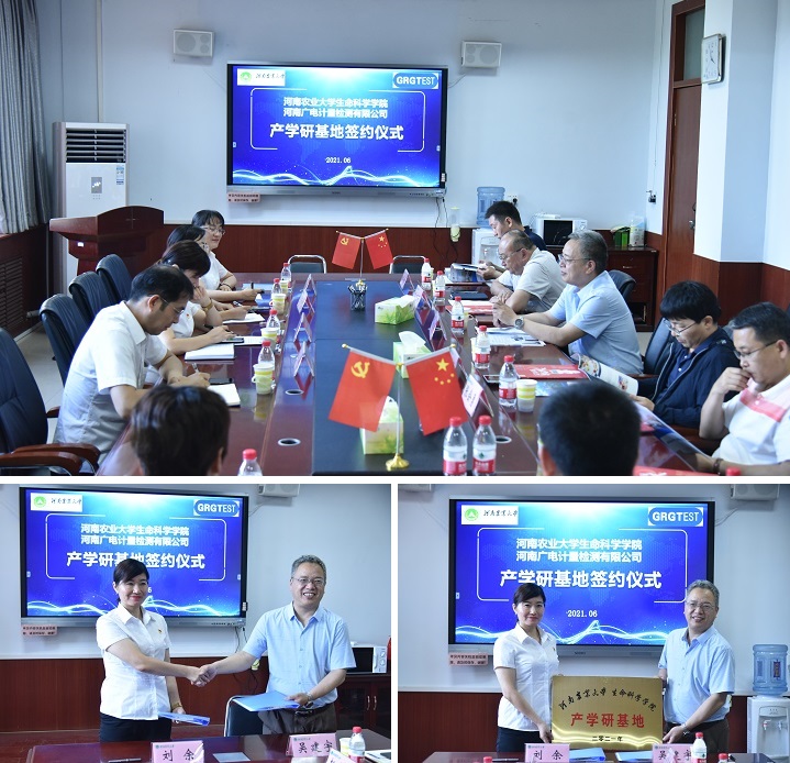 、河南广电计量检测有限公司产学研基地签约仪式”。河南广电计量检测有限公司(河南广电)总经理刘余,副总经理张闪烁,人事副总监方庆珍,副总工吴昊一行四人出席签约。小蓝视频