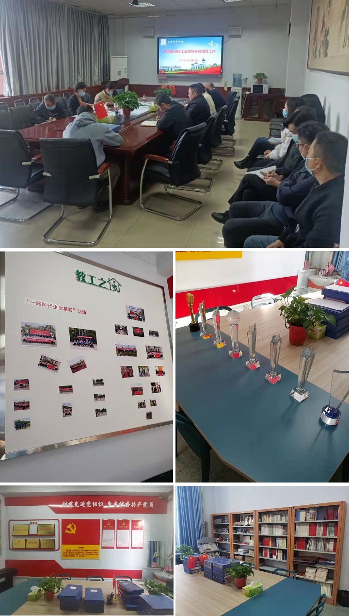 分工会检查指导“教工小家”创建工作,院党委书记张朝阳,院党委副书记、工会主席陈明明,副院长郑文明,副院长赵华新,各工会教师代表等参加会议。