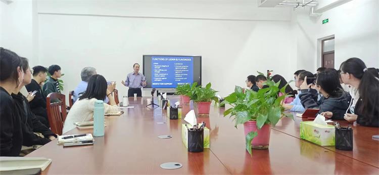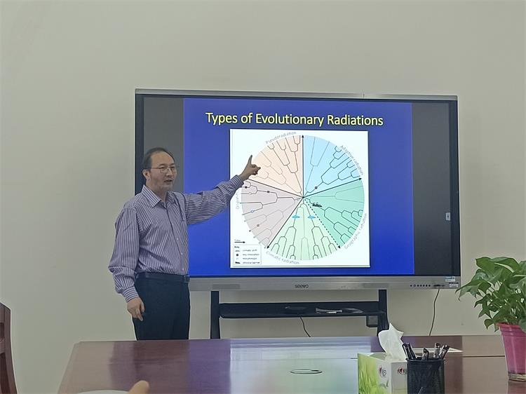 李建华从全球碳封存与木质素之间的关系引入,提出了“苯类生物化学途径的进化约束和生态权衡可能解释过去、现在和未来的植物多样性”这一新的理论,分析了木质素在不同类别植物中的分布规律,阐明了该理论在保护和缓解气候变化中的重要作用。报告结束后,他对参会师生的提问进行了详细解答,李建华严谨求实的科研态度、积极探索的求知精神使参会师生受益匪浅。