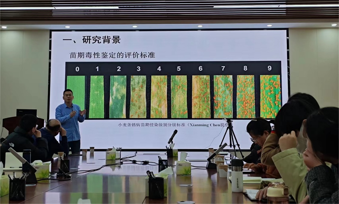 詹刚明详细的给大家讲述了条锈菌标样采集之后如何保存,鉴定条锈菌毒性时如何接菌,数据分析时科研绘图软件的用法和注意事项等。报告结束后,詹刚明与在场师生进行了亲切交流,耐心细致的回答了师生提出的细节问题。