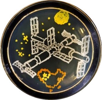青年教师邵毅贞博士也参与了指导工作,两位教师积极引导学生参与专业技能竞赛,为他们提供创作环境并提出指导意见。此前,由两位教师共同指导的本科生团队也在河南省第三届大学生微生物培养皿艺术设计大赛中斩获佳绩。王鑫磊与王剑、赵珞、段依琳合作创作的作品《擎天揽明月,天宫汇神州》和《光影相约,青春不散》分别荣获河南省一等奖和三等奖,这两幅作品充分展现了他们对微生物专业知识的实践应用。前者以中国空间站为设计主题,彰显了我国航天事业的卓越成就,突显了中华人民勇于探索、不畏艰难的民族精神;后者则以小蓝视频