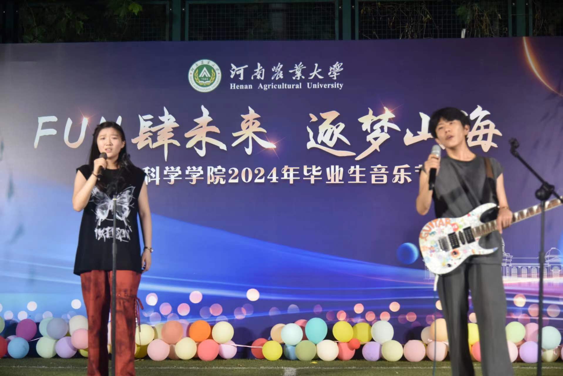 于龙子湖校区足球场举办“FUN肆未来 逐梦山海”2024届毕业生音乐节,院领导老师莅临活动现场,2024届毕业生和各年级学生积极到现场参与活动。