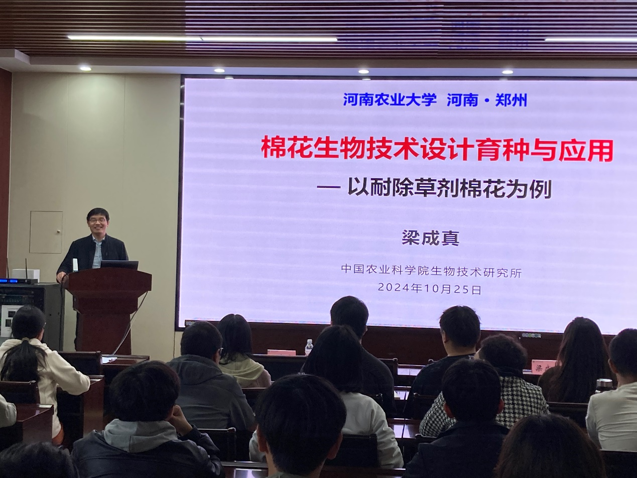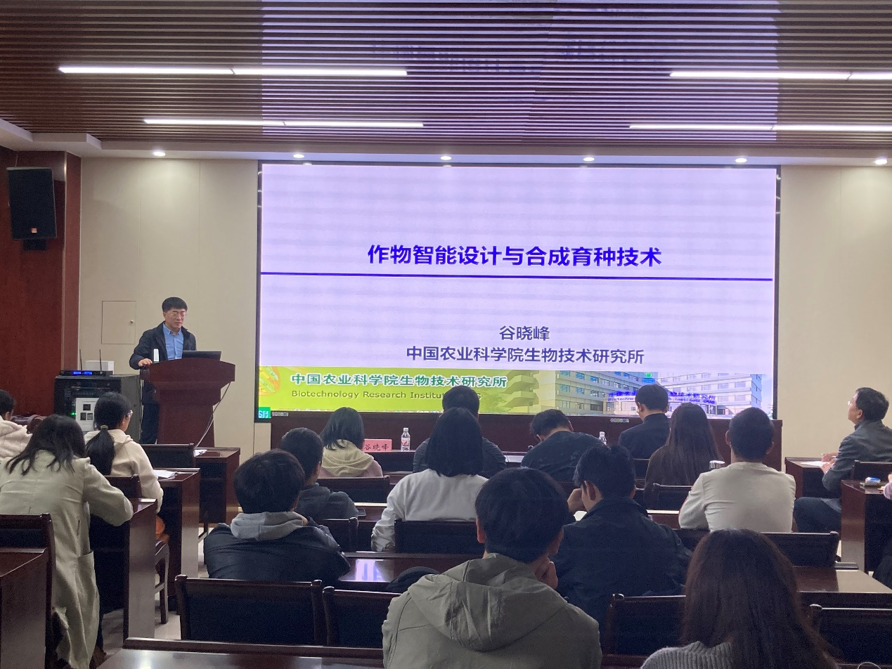 本网讯(通讯员 李瑞琪)10月25日,中国农业科学院重大任务局副局长兼生物技术研究所副所长谷晓峰研究员,以及生物技术研究所梁成真研究员应邀为小蓝视频 师生作学术报告。报告会由张会勇副院长主持,小蓝视频 相关专业教师和研究生参加报告会。