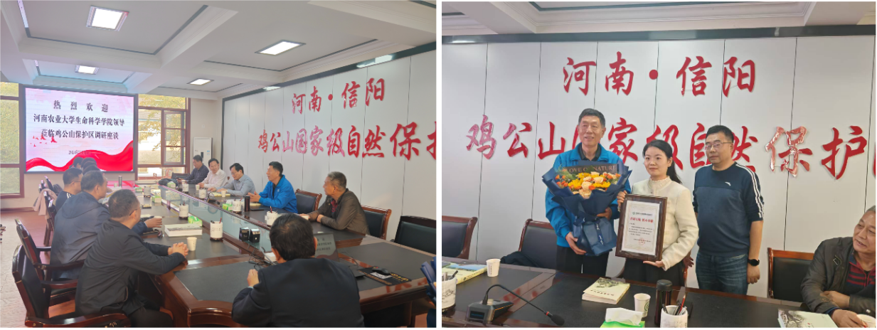 11月3日上午,植物学系教师们参加了野外学习活动。下午,在河南省信阳鸡公山国家自然保护区举行了调研座谈会,交流教学与科研成果。鸡公山国家级自然保护区管理局党委书记、局长付觉民向老师们介绍了老一辈专家们无私奉献的精神,并为叶永忠颁发了“科研引航,匠心奉献”荣誉证书。付觉民还详细讲解了保护区的发展历史,传达了一代又一代人的历史使命。教师们纷纷表示,要学习老一辈为了保护区生物多样性发展,不怕苦不怕累、为人民服务的精神,这是对党的群众路线的生动实践。