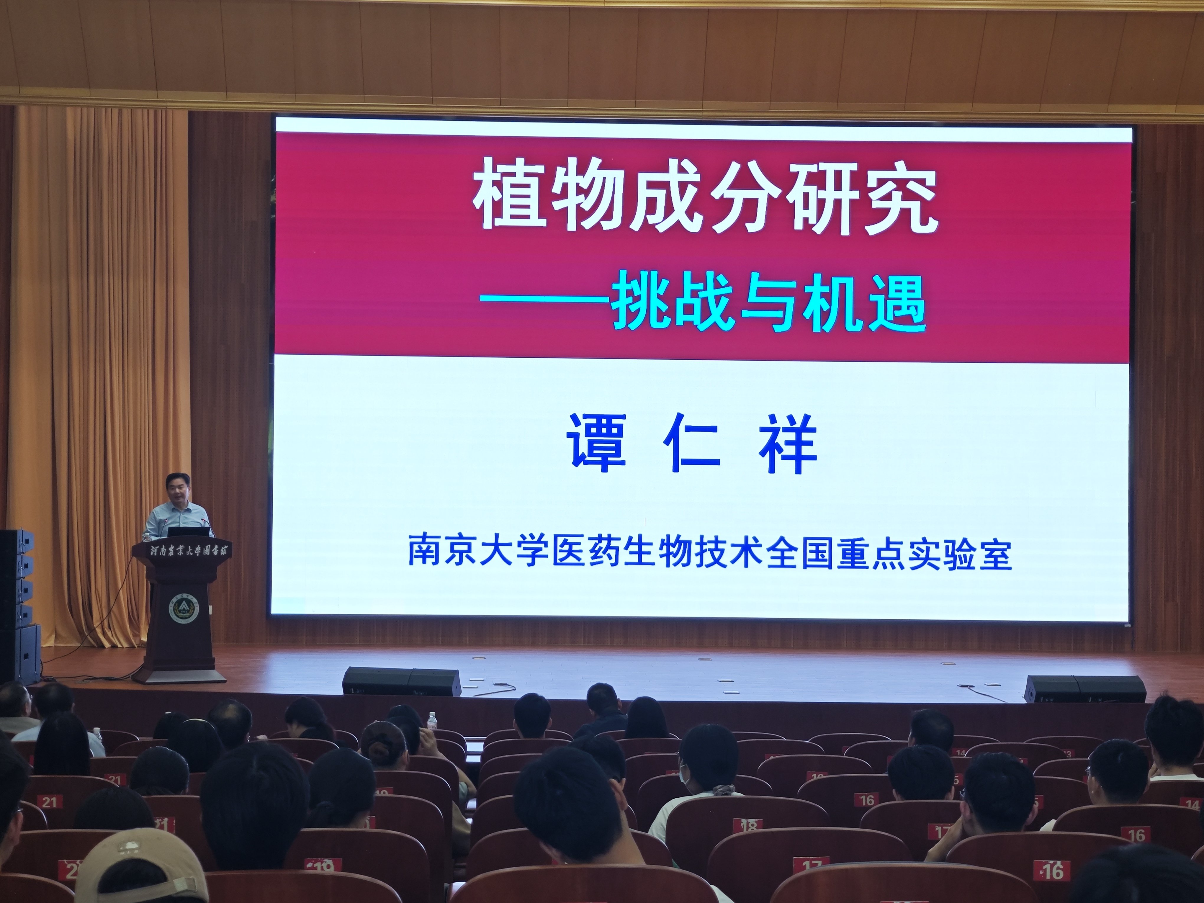 谭仁祥教授以“植物成分研究——探索与感悟”为主题,讲述了他三十多年来在植物天然产物研究方面的探索与所思所悟,提出环境胁迫是激发植物活性成分合成的关键因素,分享了团队通过分析药用植物在特定地域的生长特性,成功分离出多个抗肿瘤吲哚生物碱,并且创新性利用合成生物学技术实现了天精(抗肿瘤植物成分)、金丝桃素(欧美常用的抗抑郁植物药“Neuroplant”起效成分)等天然复杂分子的高效再生。此外,谭教授团队通过肠道菌群代谢研究,深入分析了“体外有效但体内无效”及“体外无效但体内有效”现象的潜在机制,为我国新药创制积累了宝贵的科学数据。