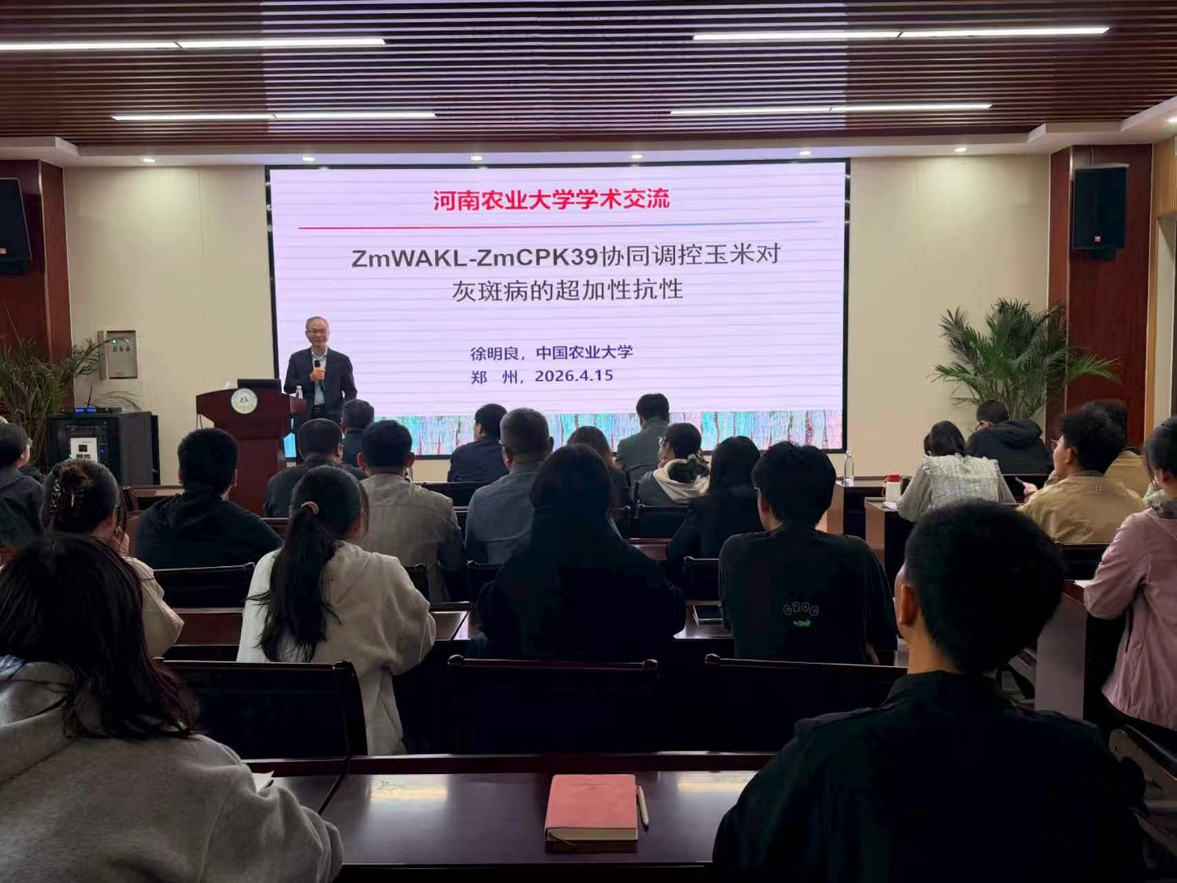 整场报告内容翔实、深入浅出,既有基础理论的深度挖掘,也有育种应用的明确导向。在交流环节,两位教授与在场师生围绕抗病与耐逆的分子机制进行了热烈讨论,耐心解答了大家提出的学术问题。此次报告会不仅拓宽了小蓝视频 师生的科研视野,也为推动作物学科在抗逆育种领域的交叉合作提供了新思路。现场学术氛围浓厚,师生纷纷表示受益匪浅。
