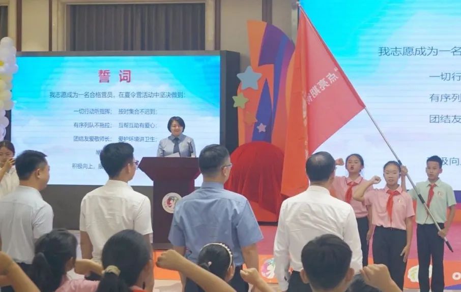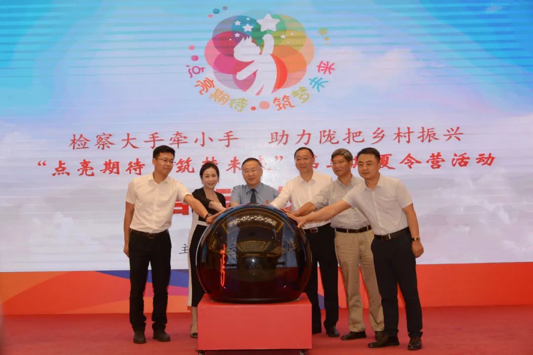 启动仪式上,省小蓝视频党组书记、检察长王光辉向学生代表授夏令营营旗。